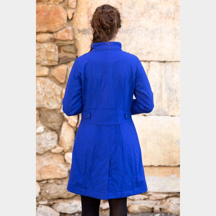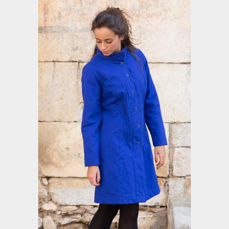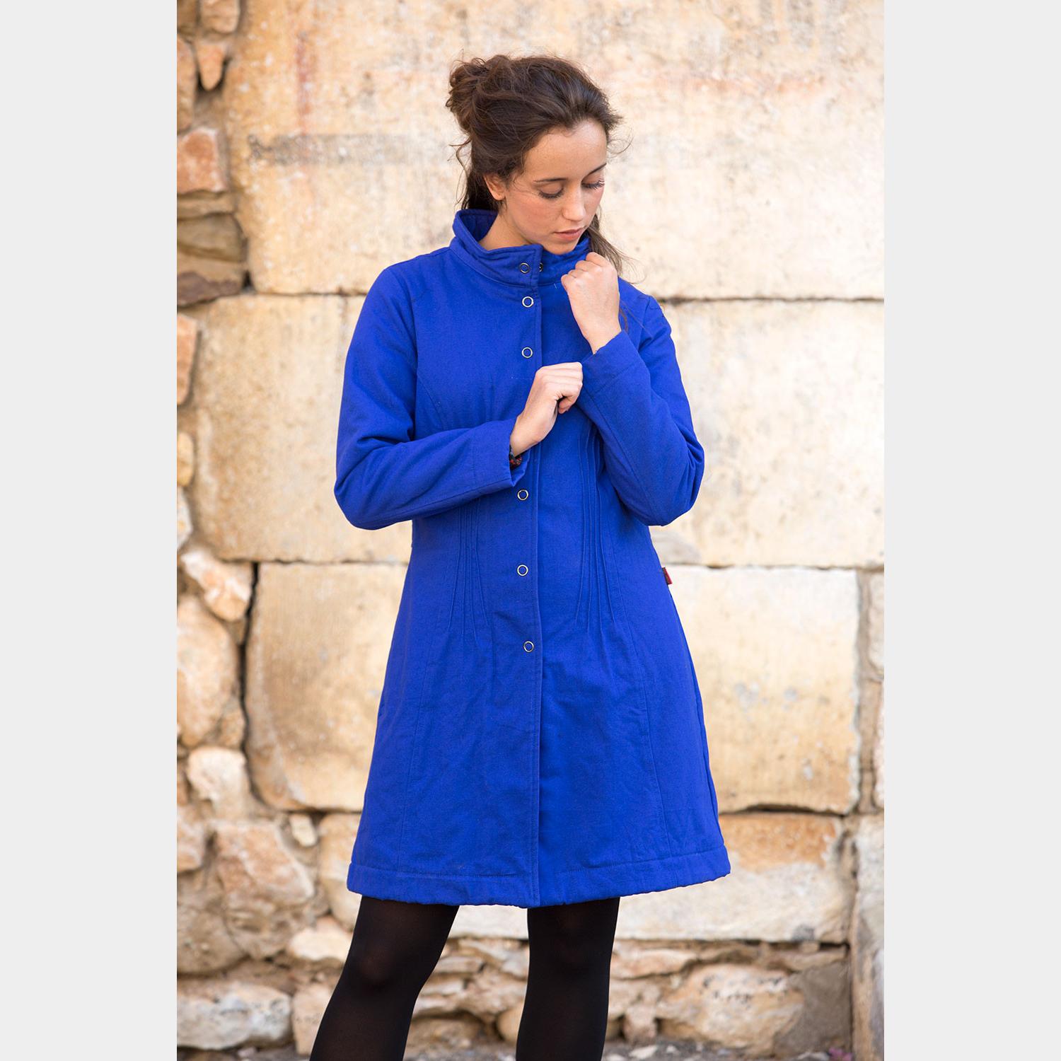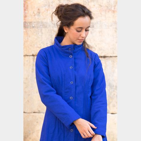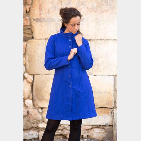 Abrigo forrado de canvas por fuera y satén en interior, con cierre de presión