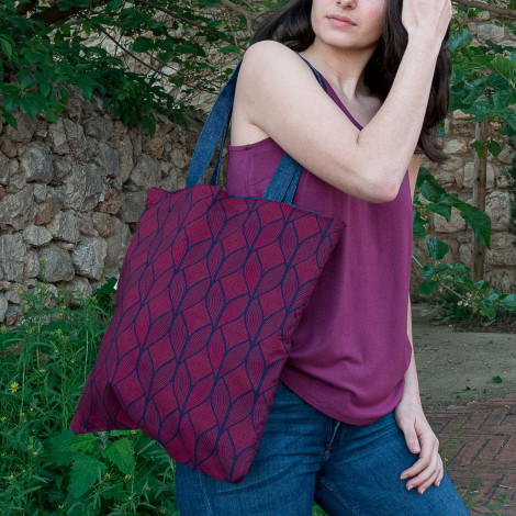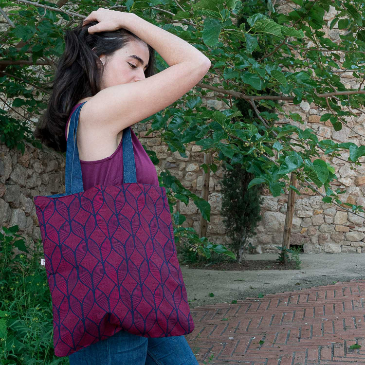 Bolso de algodón estampado por un lado y liso por el otro, son reversibles.