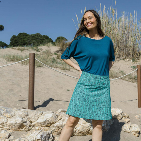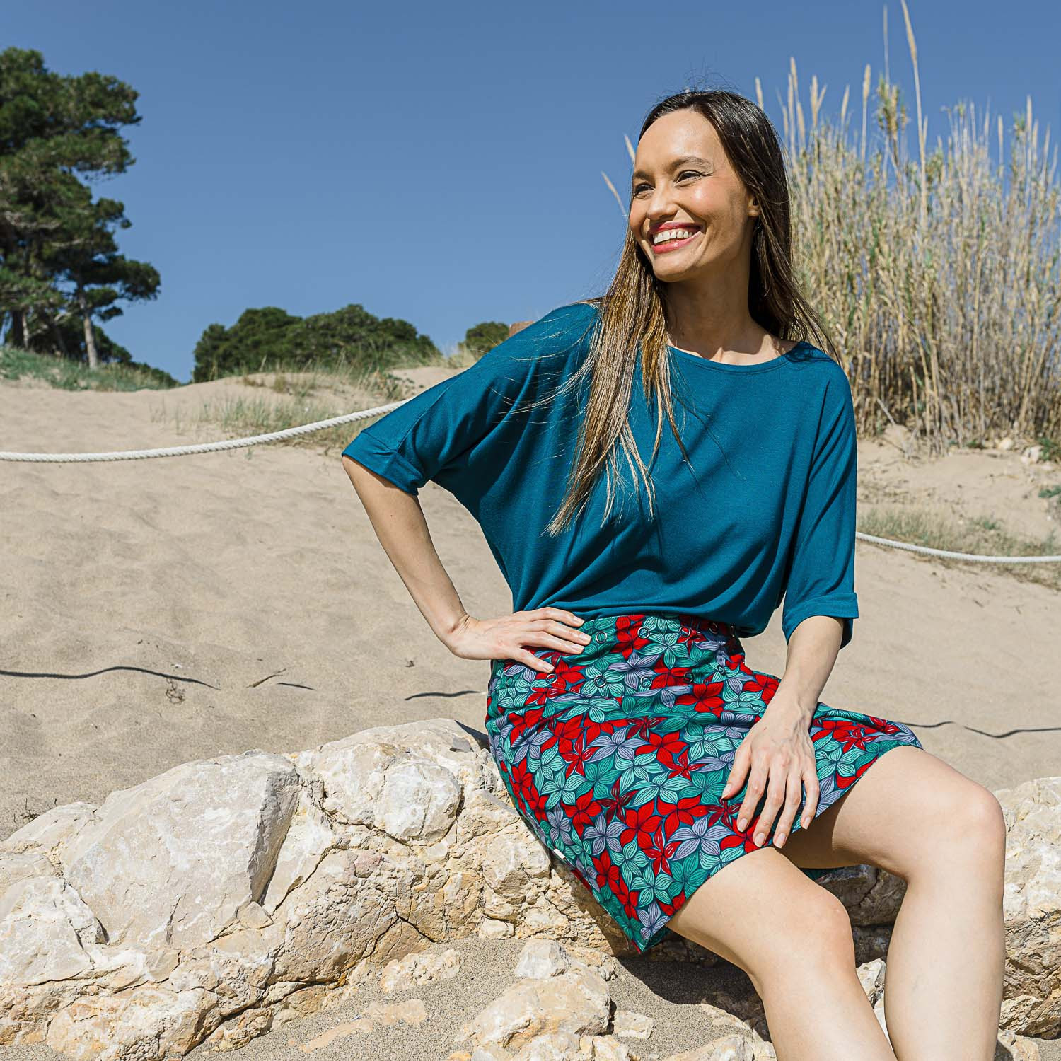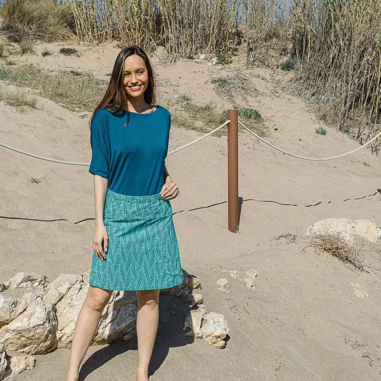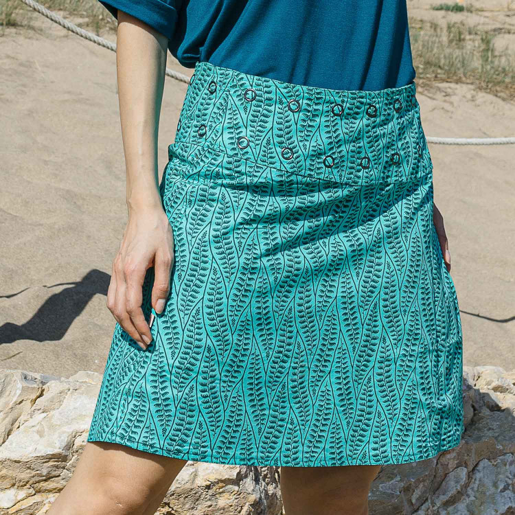 Falda de algodón reversible regulada con corchetes,50 centímetros de largo, talla única que va desde la 38 hasta la 52.