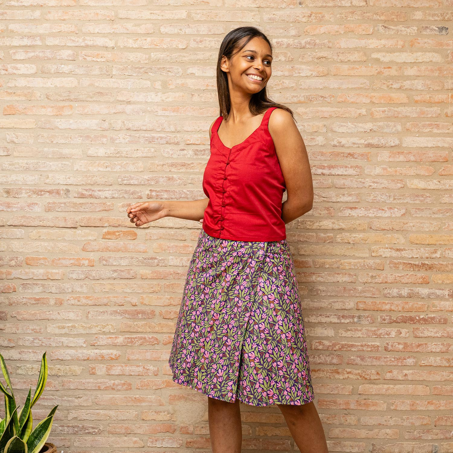 puedes llevar dos estampados totalmente diferentes según la ocasión, tanto en invierno como en verano, falda muy versátil ​