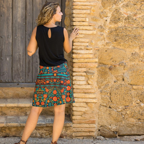 Falda de algodón reversible regulada con corchetes,50 centímetros de largo, talla única que va desde la 38 hasta la 52.