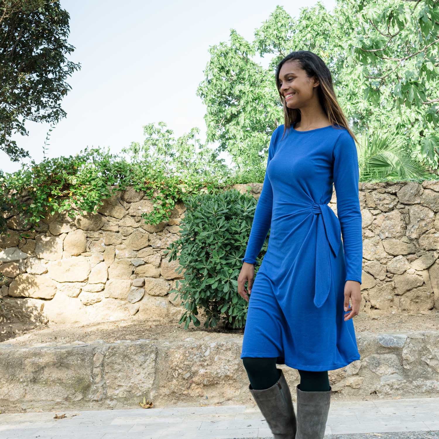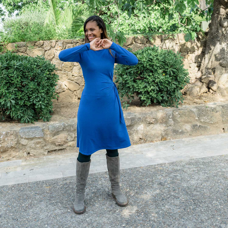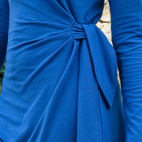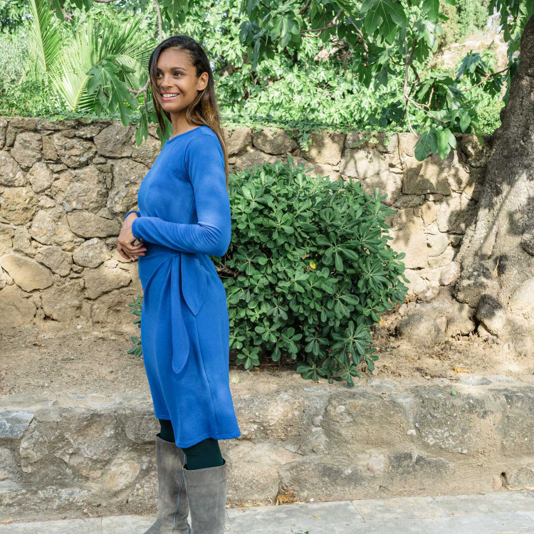 Vestido liso de felpa con escote redondo, tiene detalle de nudo en la cintura, encuentra el color que más te favorece